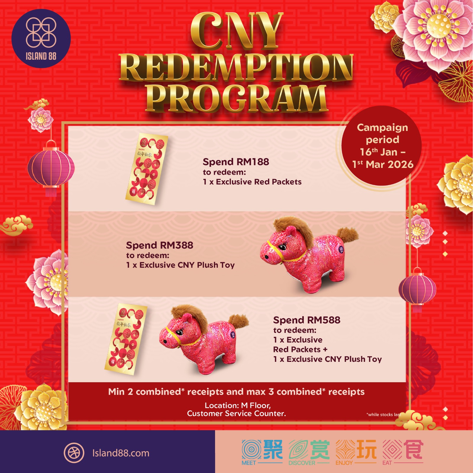 • Spend RM588 – Redeem Red Packets + CNY Plush Toy 🎁